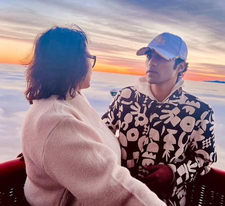Taking to his social media account, Babil shared a heartwarming picture featuring himself with his mother against a stunning sunset backdrop.