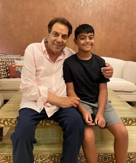 Kajol took to Instagram, where she shared a picture of Dharmendra sitting next to Kajol’s son Yug. He could be seen smiling warmly, with his arm around the young boy.