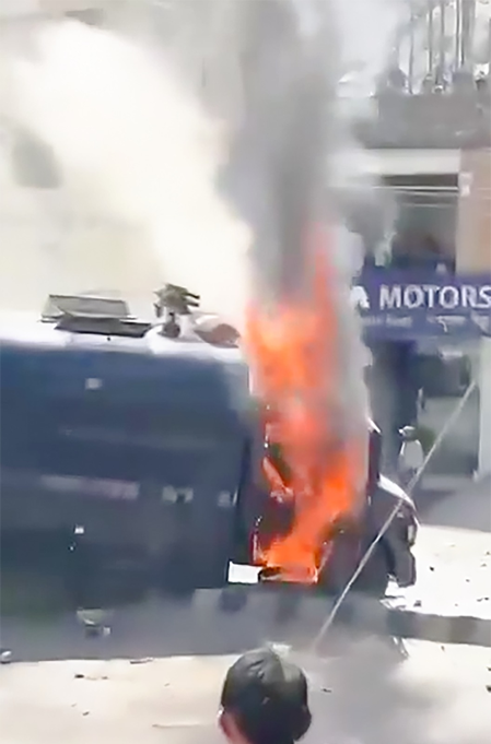 The situation worsened when protesters clashed with police and CRPF personnel deployed in the area. The angry mob set a CRPF vehicle on fire.