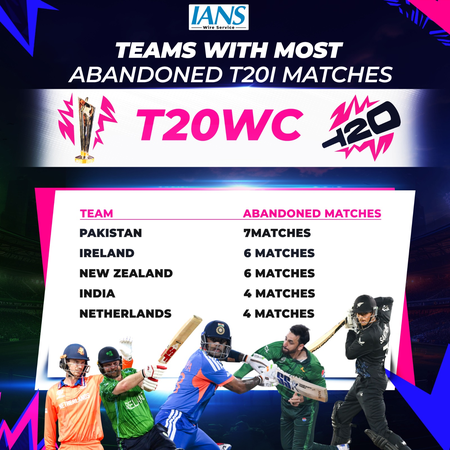 New Delhi, Feb 22 (IANS) After the opening fixture of the ICC Men’s T20 World Cup 2026 Super Eight, between Pakistan and New Zealand, was called off due to incessant rain in Colombo, Pakistan became the team with the most number of abandoned games in the shortest format of the game.